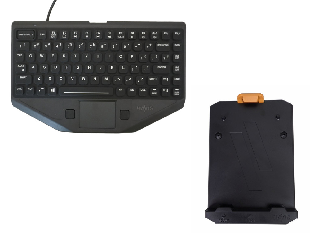 Includes Havis Rugged keyboard with emergency key (KB-1001) & patented Rugged keyboard mount (C-KBM-201)